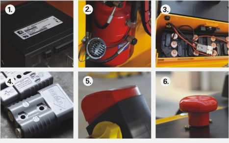 1、美国CURTIS控制器 2、WINNER液压泵站 3、210Ah大容量蓄电池 4、德国REMA充电插件 5、紧急反向行驶功能,按下此按钮,车子可反向行驶 6、紧急情况下可按下红色断电开关,切断所有电源,车子立即停止 1 CURTIS controller from America 2 WINNER pump station from Taiwan 3 210Ah large capacity battery 4 REMA plug from Germany 5 Reverse button,press this button,the truck will travel in reverse 6 Press the red button in an emergency,cut down all the power,stop the truck |