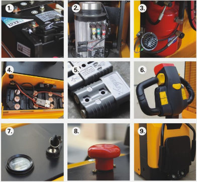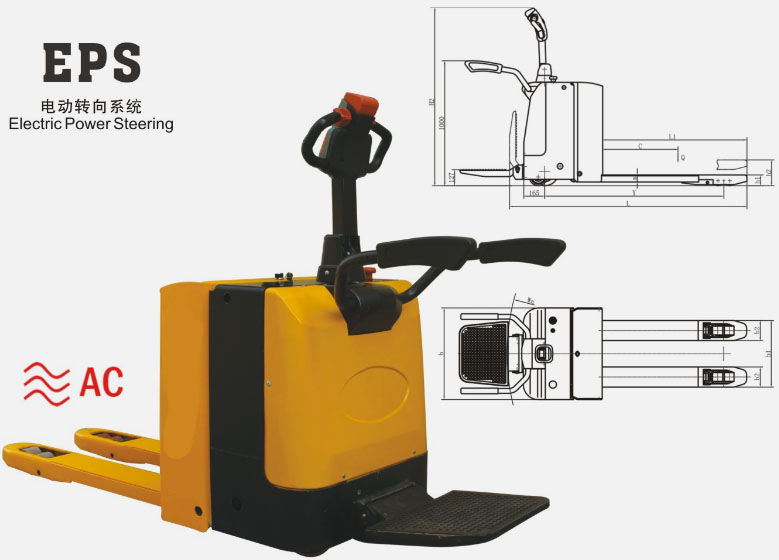 1、美国CURTIS交流控制器 2、立式交流驱动,维护方便 3、WINNER液压泵站 4、210Ah大容量蓄电池 5、德国REMA充电插件 6、CURTIS电量表,带计时功能 7、人性化设计的操作手把,带紧急反向行驶按钢 8、紧急情况下可按下红色断电开关,切断所有电源,车子立即 停止 9、踏板带缓震功能,增加了操作的舒适性。踏板护栏收起后, 可在狭小空间内操作。 1.CURTIS controller from America 2.Vartical AC motor. maintenance conveniently 3.WINNER pump stafon from Taiwan 4.210Ah large capacity batiery 5.REMA plug from Germany 6.CURTIS coulombmeter. have the function of timing 7.Humanized design of handle, with red revarse button 8.Prass tha red button in an emergency. cut down all tria power,stop the truck 9.Buffenng pPdaL make the operator feal more comfortable |