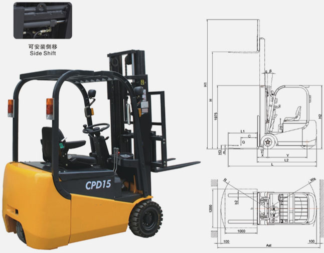 1. 三支点叉车适合于狭窄通道和有空间限制的作业,转弯半径小