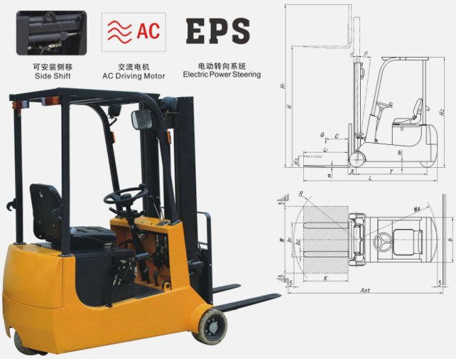 主要特点 1. 结构紧凑,小巧灵活 2. 座驾舒适方便 3. 安全制动,合理可靠 4. 适于小吨位小场合 5. 无污染无噪声 6. 可选配EPS电动转向系统,使操作更轻便 |
